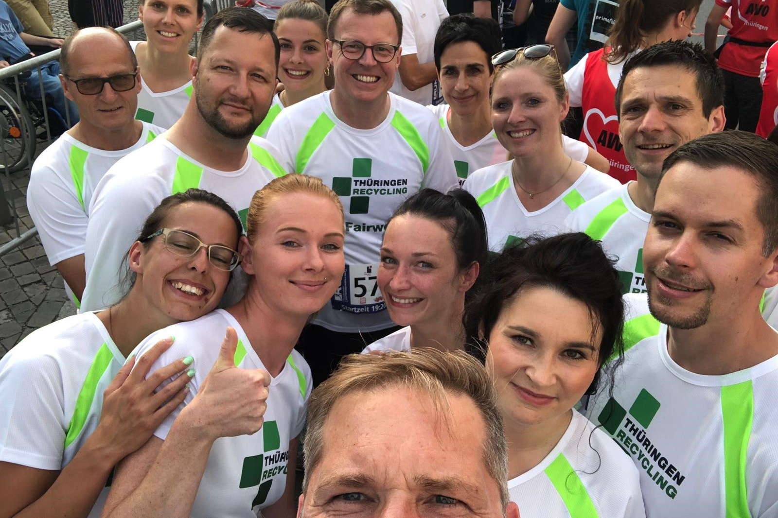 Erstmals stand Thüringen Recycling am 05. Juni 2019 am Erfurter Theaterplatz mit 16 Läuferinnen und Läufern von unseren Standorten Erfurt und Bad Langensalza an der Startlinie des Thüringer Unternehmenslauf RUN und brannte darauf loszulaufen.